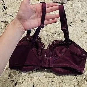 Hi! This is new with tags! 34D Venus Bra. Deep Burgandy/Purple color. Pretty iridescent shiny detail (hard to see in pics!).