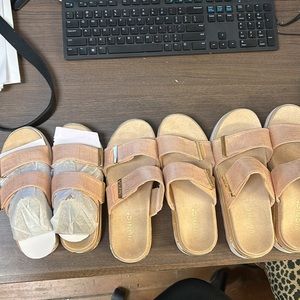 Take your warm-weather looks to new heights with the VIONIC Brandie sandal. Open toe platform silhouette. Leather upper with dual hook-and-loop closure straps and metallic hardware features branding detail. Soft, textile lining for across-the-foot comfort. Microfiber wrapped synthetic insole provides cushioning. (NO ORIGINAL BOXES)
