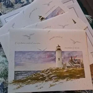 Blank notecards greeting 3 pack lighthouse coast sea gulls flags nature ocean