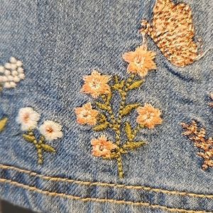 18-24ms Mantaray embroidered jeans dungaree skirt, adjustable shoulder straps