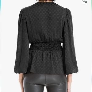 Max Studio Women's Jacquard Shine Dot Waist Tie Blouse