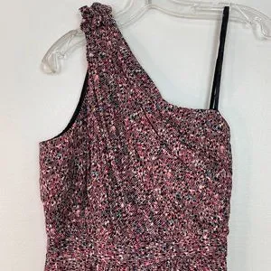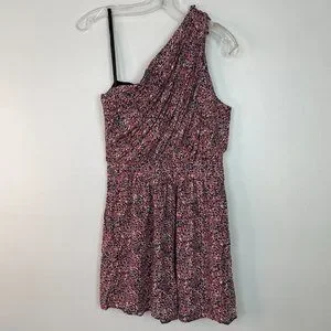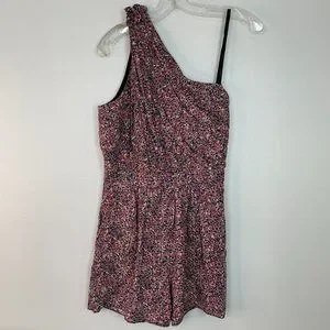 BCBGeneration Romper 2 Pink Black Pleated One Shoulder Pockets BCBG Women's