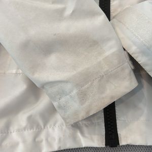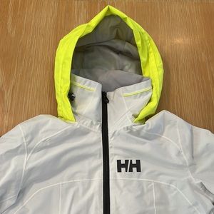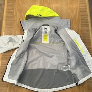 Helly Hensen windbreaker and raincoat. Could be considered a sailing jacket? But I don’t remember which section of the website I bought it under. Coolest highlighter yellow details on hood and pockets. Slight discoloration on sleeves at wrist area. Women’s size XS but worn by my 10 year old son. He loved it.