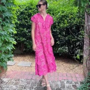 NWT, glamorous lace caftan that can be worn either with or without belt. Comes with monochromatic slip, belt.