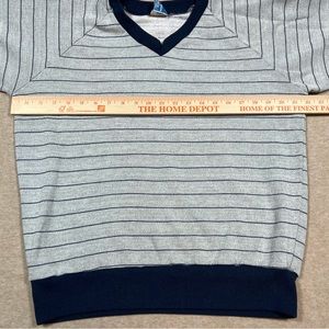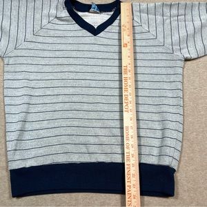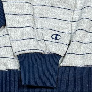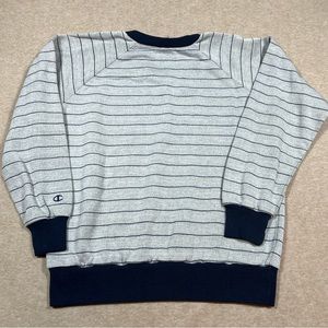 Vintage Champion Sweatshirt Gray Blue Stripe V Neck Adult Medium