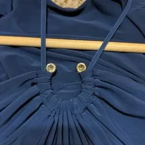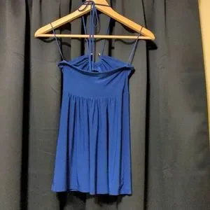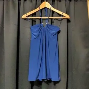 Beautiful Express Halter Tank with U-shaped crystal diamond accent. Hangs beautifully and is so silky smooth. Can wear it as a tube top or halter.