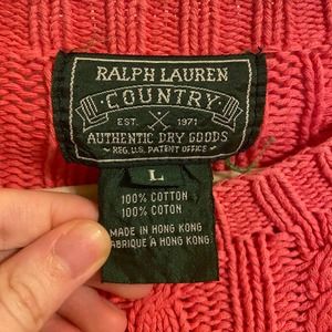 Ralph Lauren Country Pink Knit Crewneck Sweater Size Large