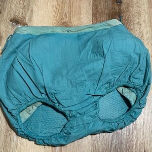 Sweet and sexy! This vintage bikini is from the 1950’s and features contoured cups, creating that classic bullet bra effect. The bottoms zip up and have built in elasticized lining. The bikini was originally white, but it was dyed teal. Color is slightly uneven, but still gorgeous. Please see photos as part of description. This is a timeless bikini that will have you feeling like Marilyn! Best for a size XS, or around a 25” waist, and no larger than 37” hip. Approximately 31-32” bust, C cup or smaller. Feels like cotton pique. No tags or labels. Structurally sound. Feel free to ask questions. Reasonable offers welcome!