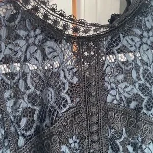 Gorgeous, black and blue, floral, print, lace overlay of black lining. Silhouette form