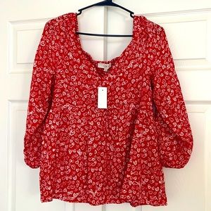 Loft Women Red Hearts Blouse