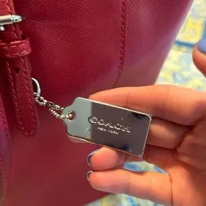 NWT Red Leather Coach tote bag with silver zipper closure, two interior pockets and one zippered pocket. Great for business or travel!