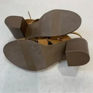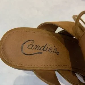 Candie’s Canova brown non-leather strappy lace up sandals with chunky heel