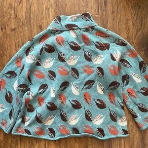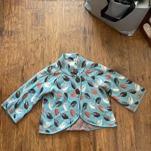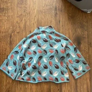 Anthropologie rare Guinevere Windy Day cardigan sweater. Crisp autumn leaves blow to and fro on this soft, swingy ‘Windy Day' cardigan from Guinevere for Anthropologie. It features a funnel neck, scalloped button front and three-quarter slightly belled sleeves with a lovely leaf print in orange, white and brown on light aqua blue. Super soft: 33% viscose, 23% nylon, 18% lambswool, 18% cotton, 4% angora, 4% cashmere. Approx 17" across the bust when flat, 18" long at back from top of shoulder. Excellent condition