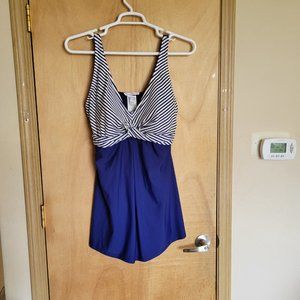 Isaac Mizrahi Live 18W Bathing Swimsuit Skirted Striped