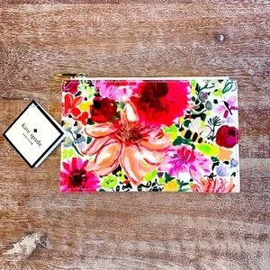 Pink, orange, green, purple, coral, lilac, gray, red, and other colors adorn this classy pencil pouch. Contains a clear with gold markings ruler, white eraser with ‘to err is human’ and a gold pencil sharpener. Perfect for back to school, work or a small bag for your handbag. Can be used for small makeup items or for travel. Versatile!