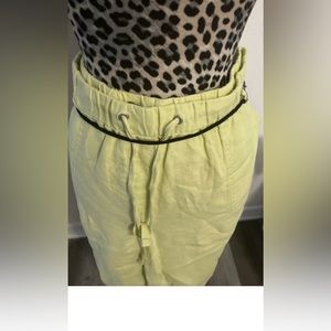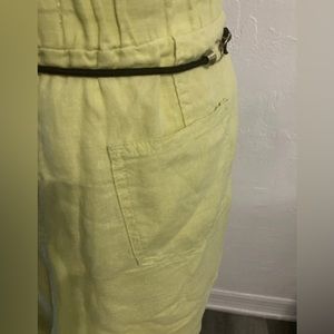 M & S collection pants size 16 Capri 100% LINEN draw string pockets yellow