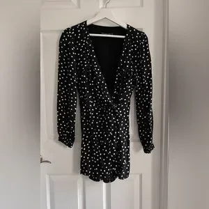 #18- Abercrombie and fitch black and white polka dot wrap romper Small