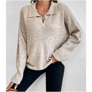 Solid Notched neck Oversized Sweater Top