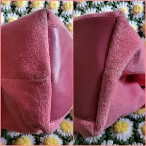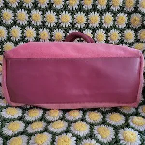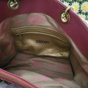 Pretty pink and very HUGE Juicy Couture bag for all your needs! Fabric handles. Gold hardware with crown accessory. I added an older "Lady Juicy" bracelet I had hanging around. Has slight tarnishing, so can be removed! Interior consists of 3 compartments: one side features the "SHOP!" zipper pocket, the other side has the "Hello?" and lip gloss open pockets. In the middle is the final zipper pocket, which can be used for further storage 💗