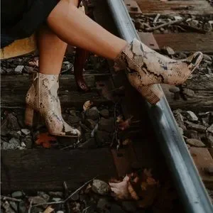 snakeprint heeled booties