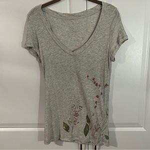 Aerie Light Gray and Pink Floral V-Neck Tee- Medium