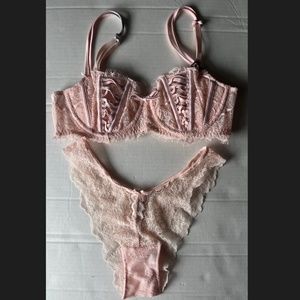 Victoria Secret Dream Angels Push Up Without Padding Lace Bra Pink 34B & Dream Angels Brazilian lace panties XSmall.