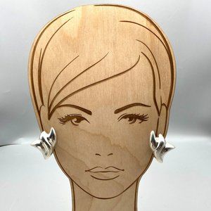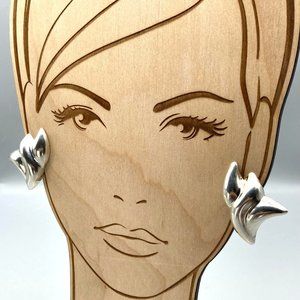 Vintage Sterling Silver Puffy Taxco Earrings, Abstract Modernist Design Clip Ons