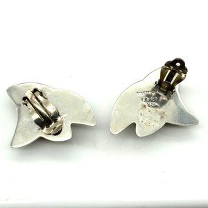 Vintage Sterling Silver Puffy Taxco Earrings, Abstract Modernist Design Clip Ons Marked Mexico TC-40 925