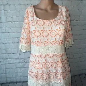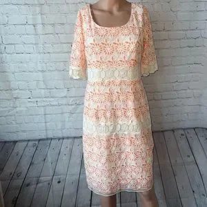 Chris Mclaughlin White & Orange floral short sleeve dress size 6