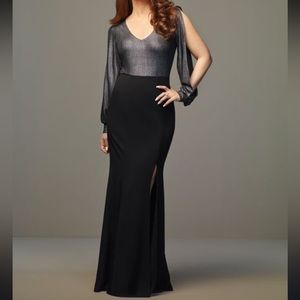 AND BLACK SILVER LONG GOWN WITH THIGH SLIT no tag but totally new no sign usage