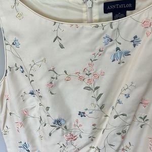 beautiful cream Ann Taylor dress with silk embroidered flower