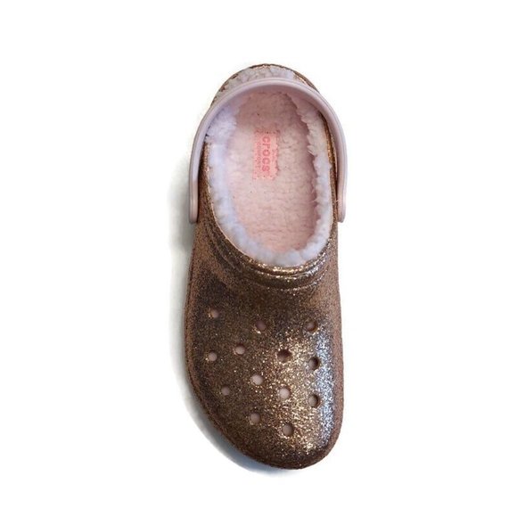 CROCS Baya Glitter Lined Clog K Lightweight Slip On Clogs Shoes Gold Pink Sz J4
