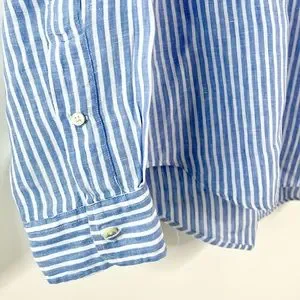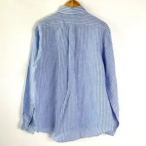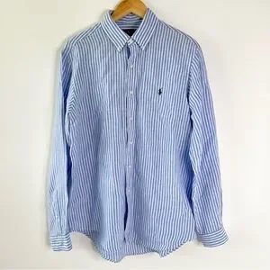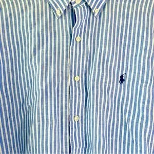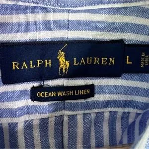 RALPH LAUREN | Ocean Wash Linen Blue and White Stripe Button Long Sleeve Large