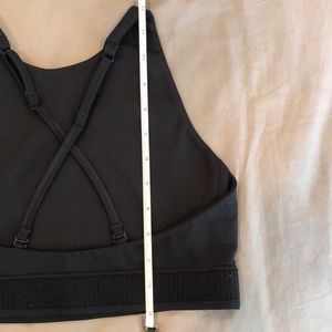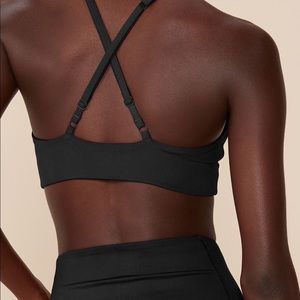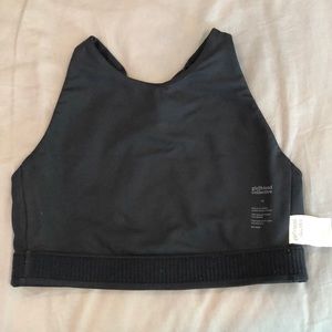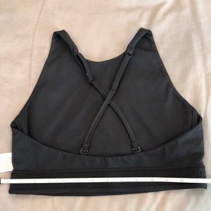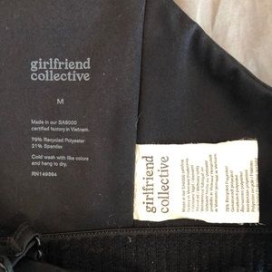 Black Topanga bra by Girlfriend Collective size medium. Adjustable back straps and high neck, cute as a top or under layer. Worn a handful of times, see pics for approximate measurements