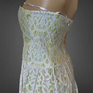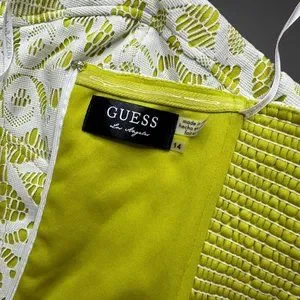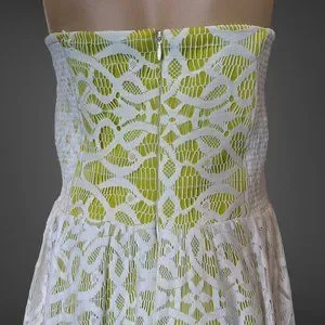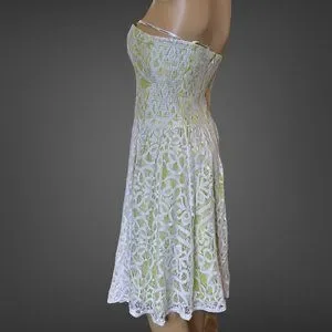 Guess Strapless Dress Size 14 Green White Knee Length Full Lace Stretch Lined