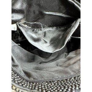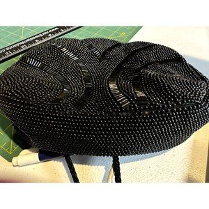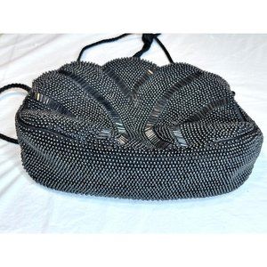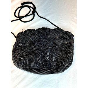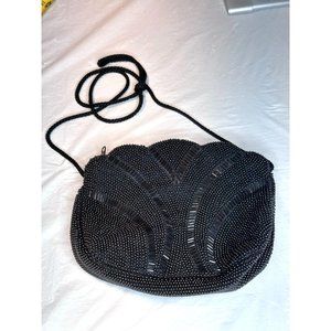 Vintage Beaded Black Evening Purse Crossbody Zip Closure Shoulder Strap Scallop