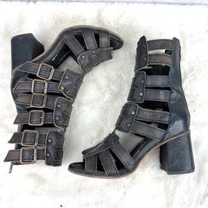 🚫SOLD! ••|•FREEBIRD🦅BY STEVEN•| 'ZEUS' Leather Gladiator Cage Sandal/Bootie