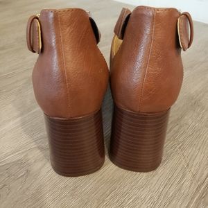 Nine West GACEO Brown Faux Leather Ankle Strap Chunky Heels Peep Toe Size 8