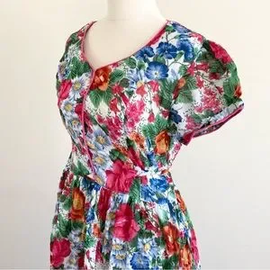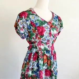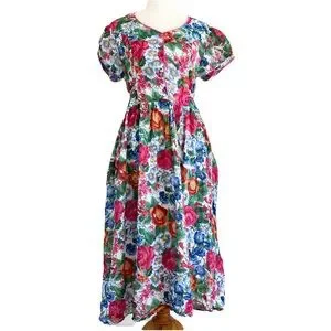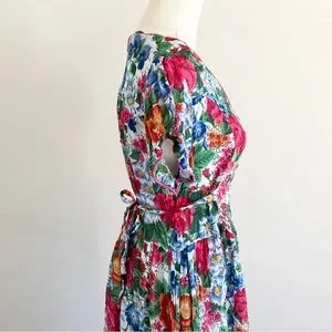 Vintage 1980s Floral Front Button Maxi Dress L Cotton100% Lined Pink Beautiful