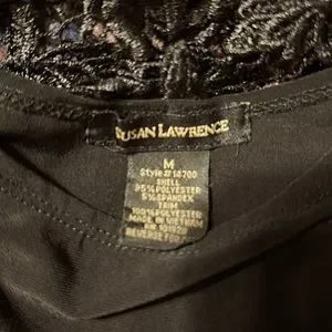 Size M shell is 95% Polyester 5% Spandex, Trim is 100% Polyester
