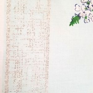Vuntage 1953 blue and green floral square tablecloth with subtle tan border. Light blue background. Use for many occassions, baby or wedding shower, Easter, dinner with guests. 51 x 51 inches. Gently used in good condition from non smoking home.