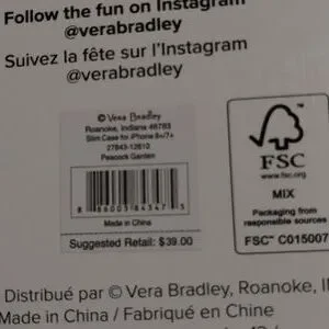 Brand new in box iphone case by Vera Bradley. Has blue and purple peacock design. No damage. Fits iphone 6+/7+.