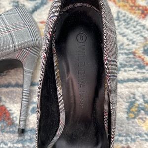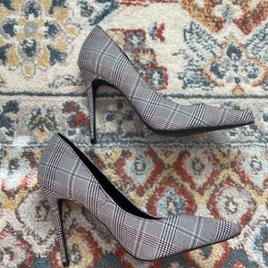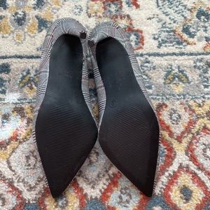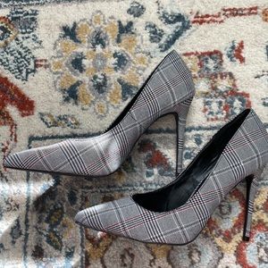 Never worn see photos for condition. Plaid pump, black white with a little bit of red.