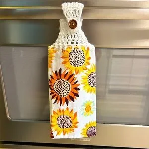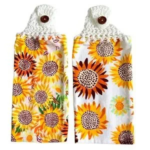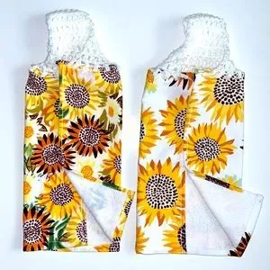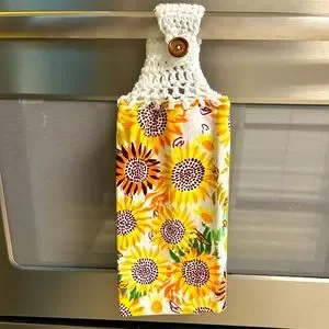 HAND CRAFTED Crocheted Top Sunflowers Hanging Kitchen or Bathroom Hand Towels