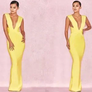 Crafted from an incredible curve creating bandage fabric but set in acid yellow, 'Ysabel' is a total show stopper. The floor sweeping maxi length adds drama and the plunge neckline is super flattering. The back split makes for ease of movement whilst the clever panelling totally snatches the waist.
