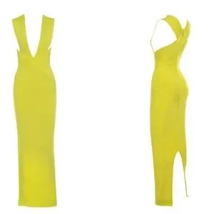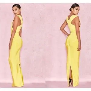 HOUSE OF CB 'Ysabel' Acid Yellow Bandage Maxi Dress NWOT