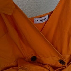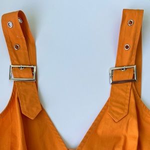 Chic Sexy Slim Orange Elegant Breasted Buckled Dress with Belt and Side Pockets.