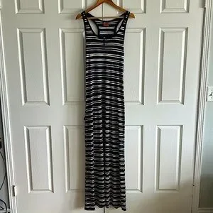 Tory Burch Luxurious 💯% Silk Long Navy/Cream Striped Maxi Dress **Size M**