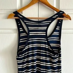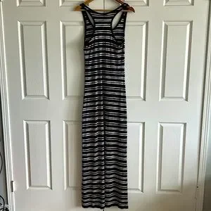 Luxurious Tory Burch 100% Silk Long Navy/Cream Racerback Maxi Dress. Size M. Gorgeous dress perfect for summer!