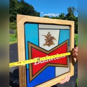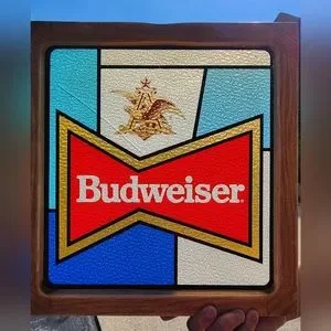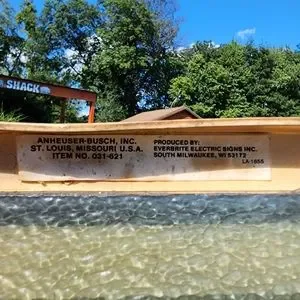 Budweiser Everbrite Electric Sign-Front Only. This is a cool piece. It does have a crack, but it does not go through the sign. The sign is made of plastic. See measurements in photos.